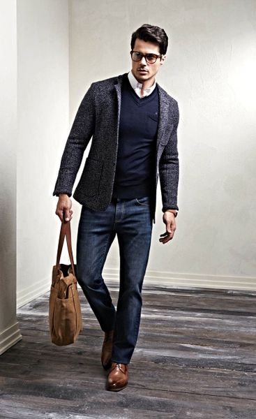 2. Tránh mặc jeans cùng suit jacket. Thay vào đó, hãy chọn cho mình một chiếc blazer với kiểu dáng phóng khoáng (không lót canvas), mang lại cảm giác thoải mái hơn để đi với loại quần này.