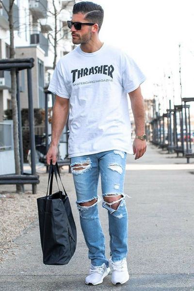 Đây là phong cách thời trang đang rất được ưa chuộng trong những năm gần đây và những vết rách ngày càng “quằn quại” hơn để thể hiện cá tính mạnh mẽ của đàn ông. Nhưng rõ ràng không cần các chuyên gia chỉ ra ta vẫn có thể thấy được kiểu quần ripped jeans chỉ phù hợp khi chúng được mặc bởi những người trẻ tuổi. Với tính chấtbụi bặm, trẻ trung, quần jeans rách được các bạn trẻ lựa chọn bởi chúng có thể giúp thể hiện phong cách riêng của bản thân trong cuộc sống hiện đại hiện nay.